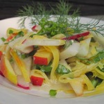 Заправить салат и сразу же подавать к столу. Это - быстрая кухня!