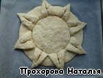 Лучики нашего солнышка необходимо еще прорезать по серединке, не до конца... Накрываем и оставляем тесто на 30 минут для расстойки.