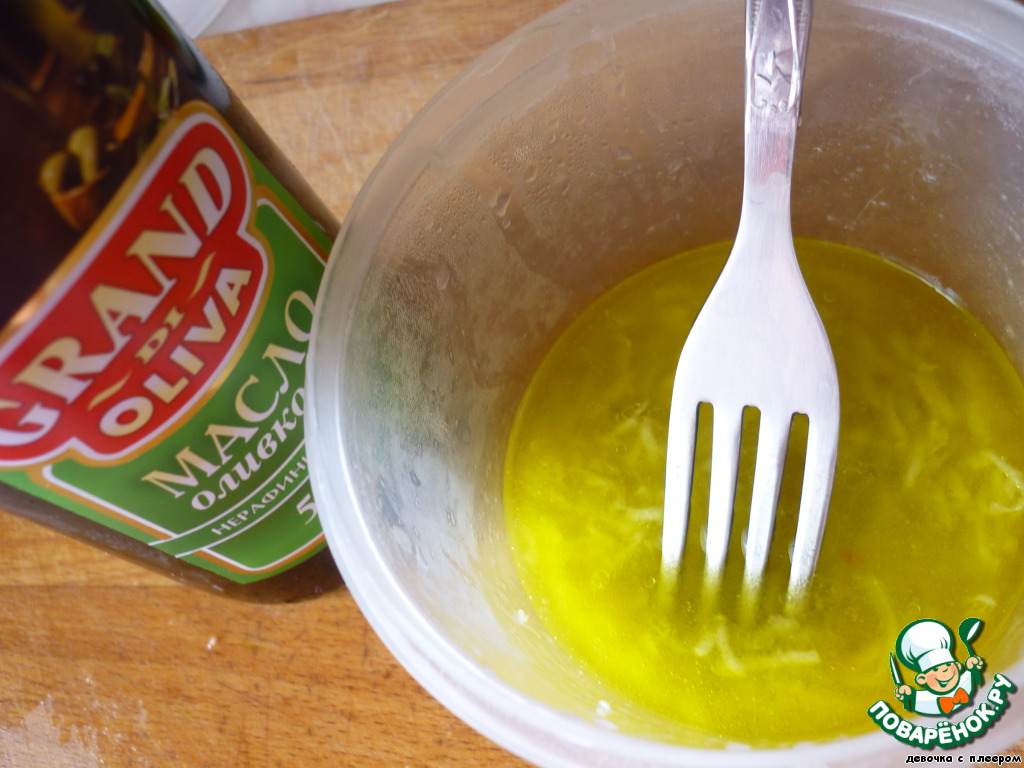 Чеснок пропустить через пресс, добавить сок лимона и растительное масло. Хорошо перемешать заправку.