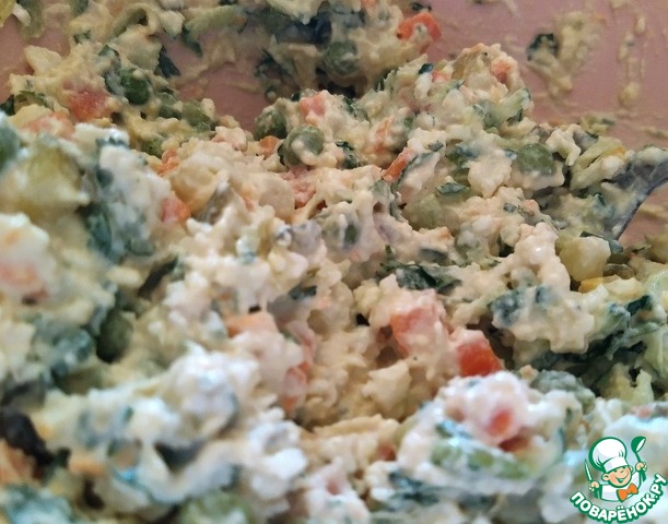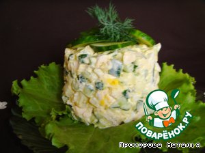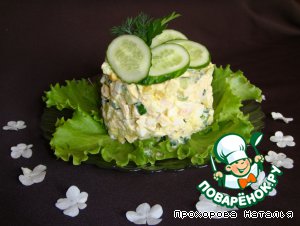 Мой муж очень любит салат "Оливье", и ничего тут не поделать... Как он говорит, это его любимый салат... А для весны, лета, мне кажется, он слишком зимний. Как по мне, так я бы его делала только на Новый год. Но что не сделаешь ради любимого мужчины... И тут случайно в интернете наткнулась на такой салатик... Сделала, мужу понравилось...