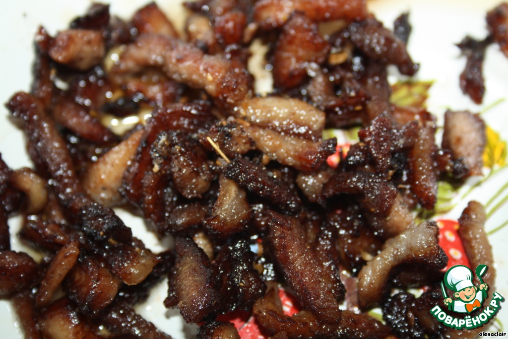 Итак, мясо нарезаем тонкими полосками, обжариваем с добавлением соли и специй.