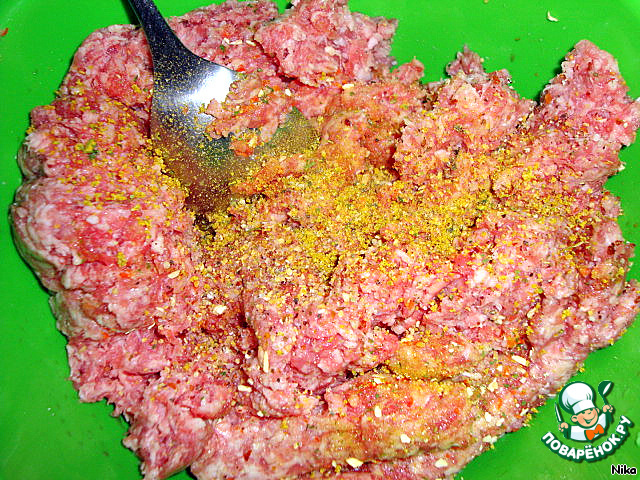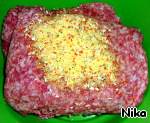 Фарш поместить в миску. Вместо соли использовать солёную смесь.