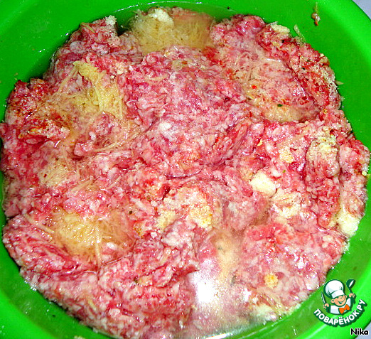 Добавить воды столько, чтобы фарш не был жидким или густым.