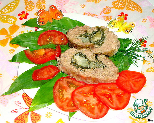 Рулет из фарша с черемшой и репчатым луком. Нежный, мягкий, вкусный и нежирный. Можно подать с гарниром и без него. К рулету подойдут свежие помидоры и зелень.