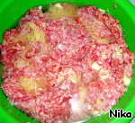Хорошо перемешать. Чем лучше перемешаешь фарш, тем мягче и воздушнее он будет.