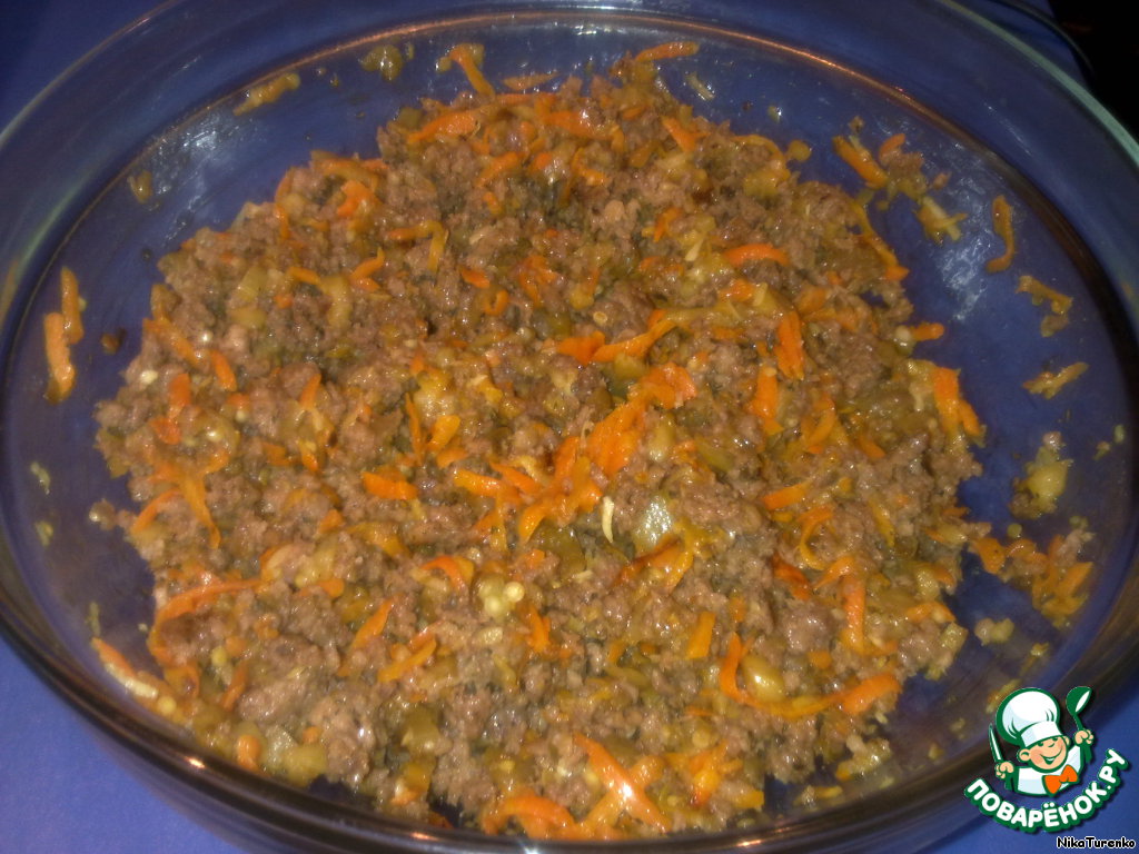 Перемешиваем овощи и фарш. Пробуем на соль, если соли мало, добавляем по вкусу.