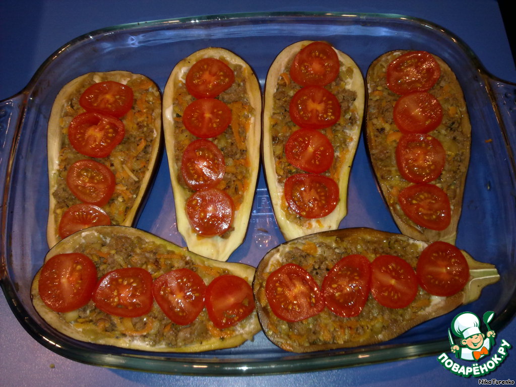 Я очень люблю овощи, запечeнные в духовке. А баклажаны, фаршированные мясом и овощами, – одно из моих любимых блюд! С их приготовлением всегда можно поэкспериментировать, добавить в фарш грибы, или рис, заменить одни овощи на другие. Сегодня я приготовила самые простые, но очень вкусные лодочки с фаршем, сыром, помидорками черри и соусом для запекания. Советую всем)))
