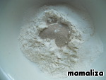 Муку просеять, половину муки отделить и отставить. Добавить дрожжи.