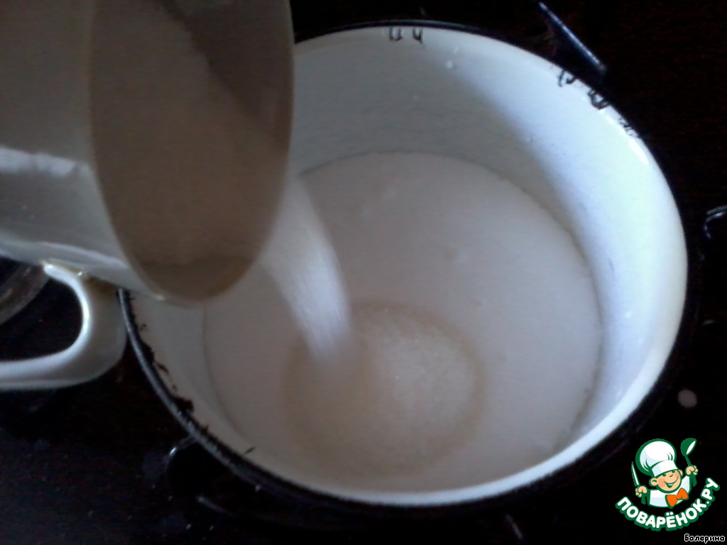 Сливки ставим на огонь, добавляем сахар. Нагреваем до полного его растворения.