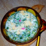 Я всегда подаю с картошкой и зеленью, хотя картофель уже есть и в супе, но нам так больше нравится. Вот такая получается окрошечка!