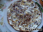 Я не жду, пока блины остынут и сразу смазываю сначала майонезом, затем луком.