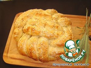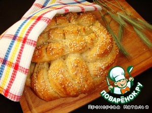 На центральных 3-х полосах делаем по 3 надреза ножницами. Обмазываем плетенку яйцом и посыпаем маком (у меня кунжут). Я обежала 4 магазина по близости от дома, но нигде его не было... (((