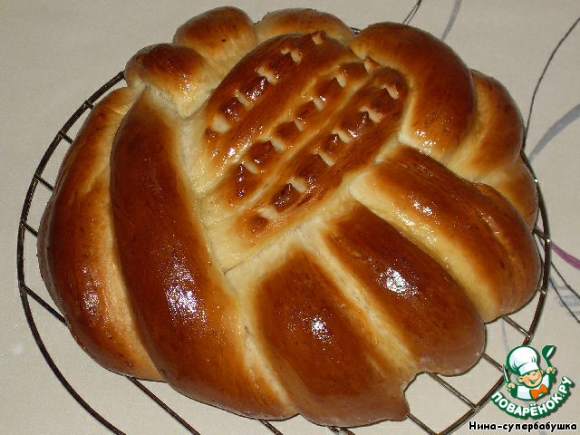На центральных 3-х полосах делаем по 3 надреза ножницами. Обмазываем плетенку яйцом и посыпаем маком (у меня кунжут). Я обежала 4 магазина по близости от дома, но нигде его не было... (((