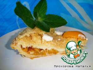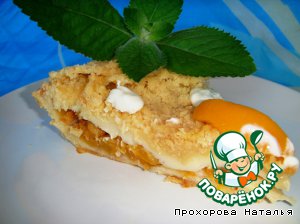 Посыпать сливочно-персиковую начинку масляно-мучной массой. Выпекать в разогретой духовке до 180 градусов примерно 50 минут, пока корочка не зарумянится.