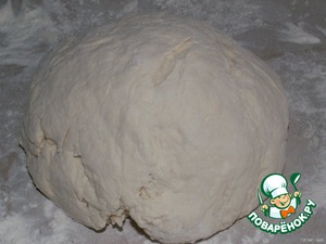 Постепенно добавляя просеянную муку, вымесить тесто. Оно должно быть однородным и не прилипать к рукам. -
