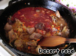 Добавить остальные овощи. Долить кипятка, чтобы вся мясо-овощная смесь была покрыта соусом. Тушить под крышкой 15-20 минут. До появления характерного "лакированного" блеска на мясе. Это значит, что блюдо почти готово. Попробовать мясо и твердые овощи, если они готовы, можно вводить пряности.