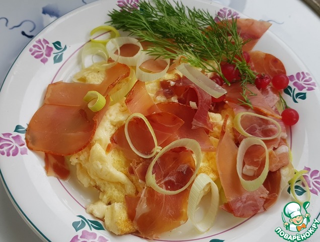 Ветчину порезать тонкими полосками, длинной 3-4 см.