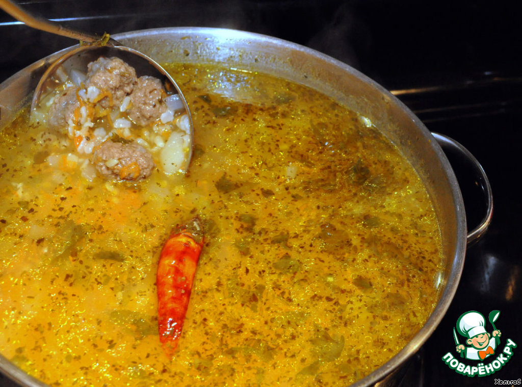 Как только все начинает кипеть уменьшить огонь и начинать добавлять фрикадельки. Я предварительно опускала их в кипящую воду и после перекладывала в кастрюлю с супом.