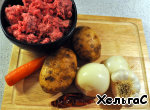Приготовим фарш, картофель, морковь, лук, чеснок, для готовки.