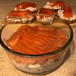 - Семга (или форель, слабосоленая) — 300 г