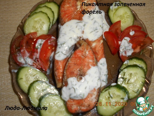 Очень вкусная, очень сочная запеченная форель с интересным пикантным соусом. Все готовится очень быстро и легко.
