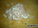 Бекон и лук мелко нарезать.