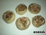 Выложить фаршированные грибы в форму для запекания. Запекать 25-30 минут при температуре 170 градусов.
