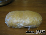 Получилось "почти тесто", которое я завернула в пленку и убрала на некоторое время (пока готовится начинка) в холодильник.