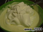 Теперь сливки: хорошо охлажденные сливки взбиваем до "плотных пиков" и вводим в сырную смесь.