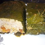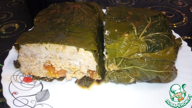 [+1]На мой вкус получилась большая, сочная котлета в виноградных листьях, но не террин, да и на долму не похоже.