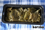 Распределить остаток фарша. И закрыть виноградными листьями.