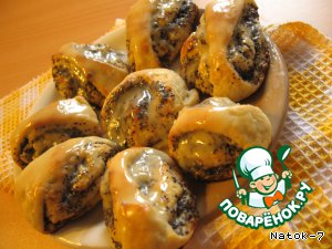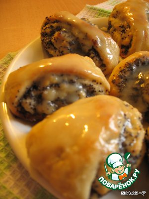 Эти булочки, прослоенные сладкой маковой начинкой и политые ванильной помадкой, будут хорошим угощением к чаю.