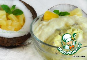 Рецепт «Сливочно-кокосовое суфле с ледяным ананасовым соусом»: