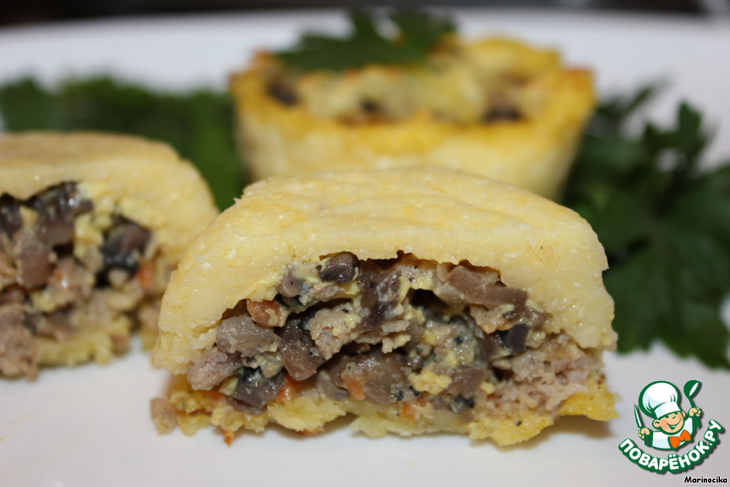 Рецепт «Корзиночки из поленты с фаршем и грибами»: