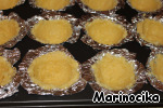 Формочки для кексов обволакиваем фольгой, края не вырезаем, чтобы легче было вынуть корзиночки.
