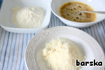 Яйца взбить с солью, добавить все специи и перемешать. Панировочная смесь будет состоять из муки, яиц со специями и пармезана.