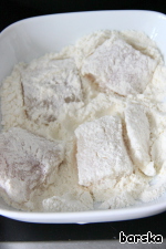 Каждое филе разрезать на 3-4 части и обвалять в муке. -
