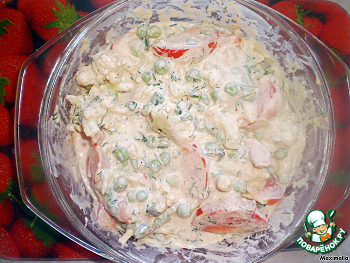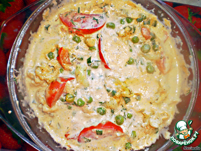 Рецепт «Теплый салат-запеканка из цветной капусты»: