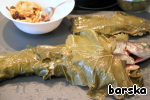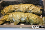 Виноградные листья, если будешь свежие исп-ть, посмотри рекомендации чуть выше, Любе. Это из другого блюда, но имненно со свежими листьями...
