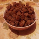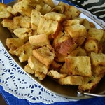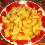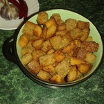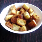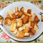 Моя мама еще лет 20-25 назад на протвине в духовке сушила маленькими кубиками хлеб. Тогда про сухарики в пачках и чипсы даже не слышали. Мама правда делала без масла и соли, но было офигенно вкусно!!!