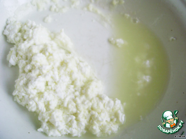 Творог + соль, поставить в микроволновку на пару минут до отделения сыворотки. -