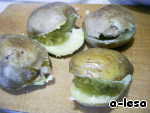 Аккуратно разрезаем картофель не до конца, вынимаем мякоть.