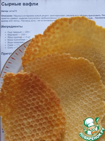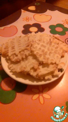 Нашла в интернете новый рецепт, заинтересовал, решила попробовать приготовить. Результат приятно удивил: изделия получились необыкновенно хрустящие, тоненькие, воздушные... Напоминают крекер или чипсы. Начнешь есть - не остановишься. Прекрасно подойдут к пиву.
