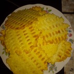 Если выкладывать тесто по 1 кофейной ложке и выпекать по 2 шт., то получатся вафельки диаметром приблизительно 7 см.