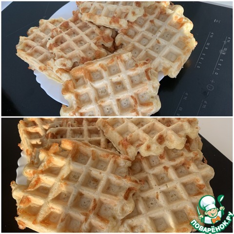 Во время выпекания можно открывать вафельницу и следить за цветом изделий. Я специально засекла время, одну порцию я выпекала за 40 секунд.