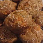 В формочки для маффинов выкладываем тесто (2/3 объема формочек). Посыпаем тесто кунжутом.
