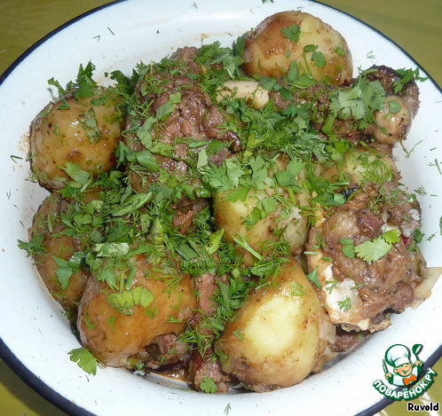 Теперь можно достать нашу румяную картошку. Посмотрите, какая красавица! Уже хочется взять вилочку, разломить исходящие ароматным паром клубни, добавить кусочек сливочного масла, мелко порубленной зелени и приступить к трапезе…