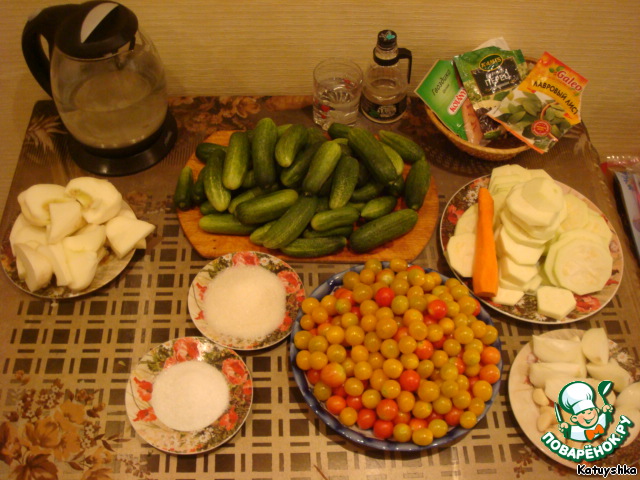 "Ассорти овощное Katuyshka" Вкус необыкновенный, рецепт моей прабабушки. Овощи получаются упругие, хрустящие. Попробуйте раз, уверяю, вы будете мариновать овощи только таким способом. Все очень просто...