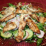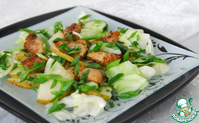 Рецепт салата мне дала величайшая любительница и ценительница груш на "Поваренке"... разумеется, Сара (nuf_nuf). Вначале я решила, что она шутит, потом удивилась сочетанию, затем подумала, что плохого Сара не посоветует, и решила довериться... результат покорил. Куриная грудка после выдержки в очень необычном маринаде (конечно, с грушами) получается изумительной - нежной, сочной, ароматной. К этому великолепный набор весенних овощей и легкая заправка. В общем, это стоит попробовать! Некоторые заморочки возникли с названием, потому что в оригинале это был "Салат с утиной грудкой и азиатской грушей", но, поскольку и грудка не утиная, и груша не азиатская, было принято волевое решение салат переименовать.
