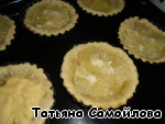 Убираем пергамент с фасолью. Духовку не выключаем. Раскладываем кружки лимона по формочкам, присыпаем сахаром, а сверху распределяем крем и снова в духовку на 20 минут.